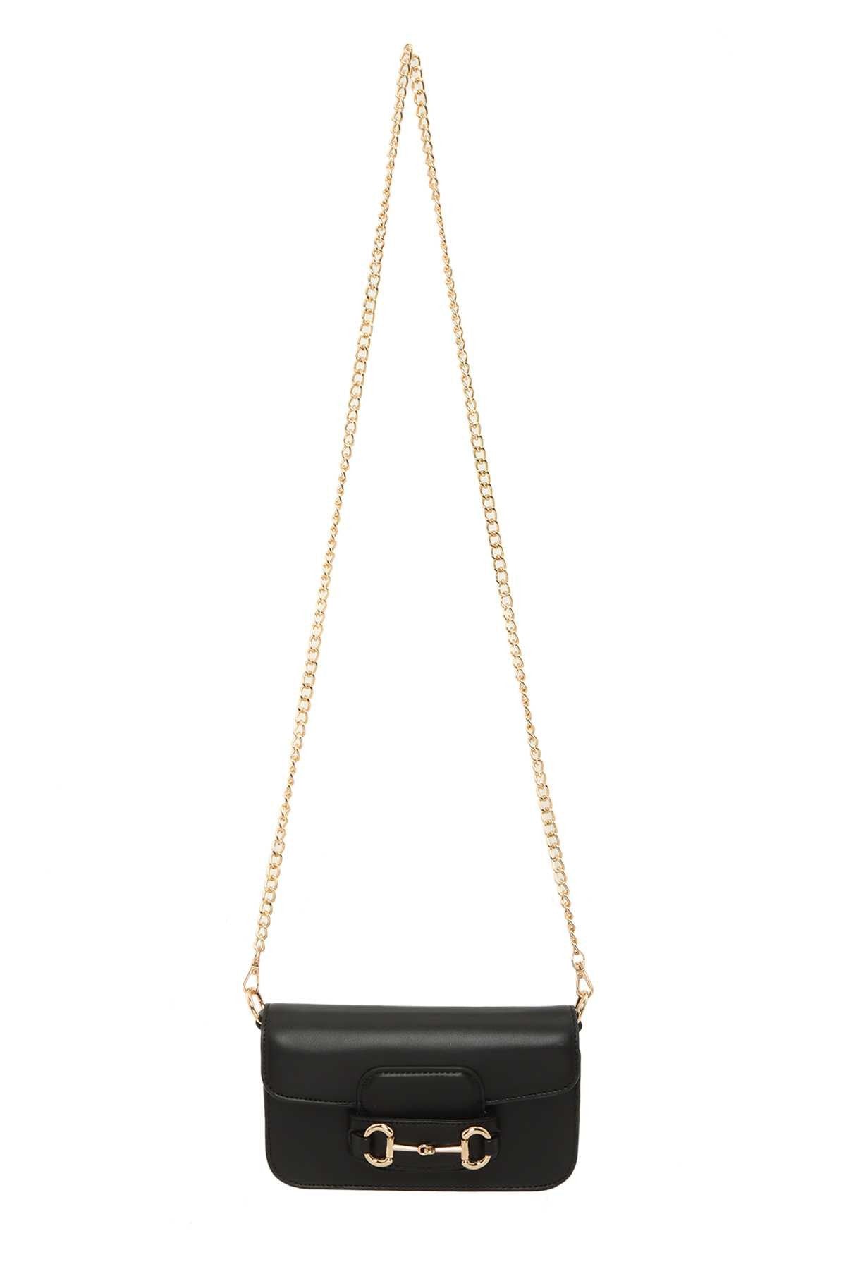Faux Leather Mini Crossbody Bag with Horsebit Accent 8"(L) x 2"(W) x 5"(H)