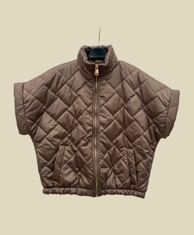 Elevate your outerwear game with this Zip Up Puffer, featuring a daring short cap sleeve design that redefines warmth and style. This sleek, layerable piece zips up effortlessly to lock in heat without bulk, perfect for bold looks on chilly days. Stay warm while turning heads.